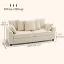 HOMCOM Corduroy Couch, 3 Seater Sofa, Modern Upholstered Couch with Curved Armrests and 8 Removable Pillows, Beige