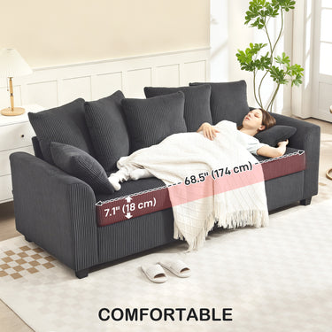 - • Features a generous 68.5" (174 cm) seating width, easily accommodating three people