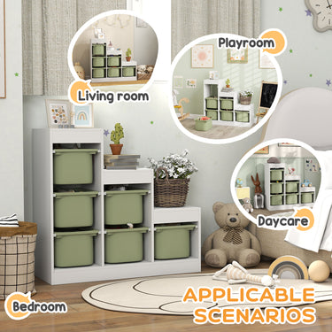 Discover the joy of tidy playrooms with the Qaba Toy Storage Organizer! Featuring six removable bins and a 3-layer design, this playful yet practical solution keeps toys and books neatly organized. Standing at 35.4" (90cm), it's perfectly sized for children to reach their toys and books independently. Great for ages 3-8 years old, it transforms any space into a clutter-free zone, making cleanup as fun as playtime!