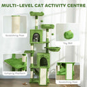 PawHut Cat Tree, 70" Multi-Level Cat Tower with 2 Condos, 2 Perches, Hammock, Toy Balls, Scratching Posts and Board, Green