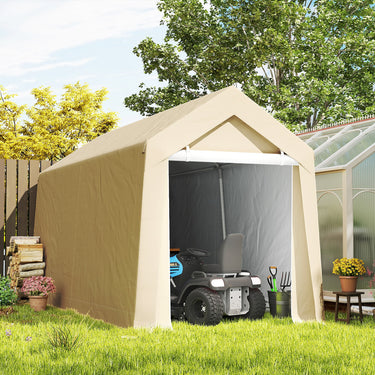 Outsunny 7' x 12' Outdoor Storage Shed Portable Garage with Roll-up Door for Motorcycle, Bike, Garden Tools, Beige