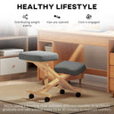 HOMCOM Ergonomic Kneeling Chair, Posture Chair with Rubberwood Frame, Wheels for Home Office, Posture Correction, Cream White
