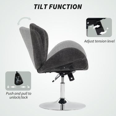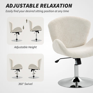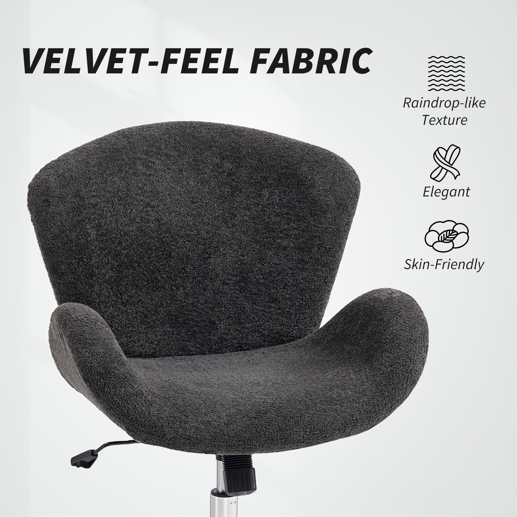 Tired of stiff, uninspired seating that clashes with your decor? Long hours at your desk can feel draining in a chair that offers no comfort or style. This HOMCOM office chair transforms your workspace. Sink into its plush, body-hugging velvet-feel upholstery and adjust the height and tilt for personalized support. The elegant cream and raindrop-like texture of this swivel chair elevates any room, making every moment at your desk chair a relaxing experience.