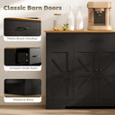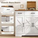 - • Two-tone farmhouse design with barn doors adds rustic charm to your home
