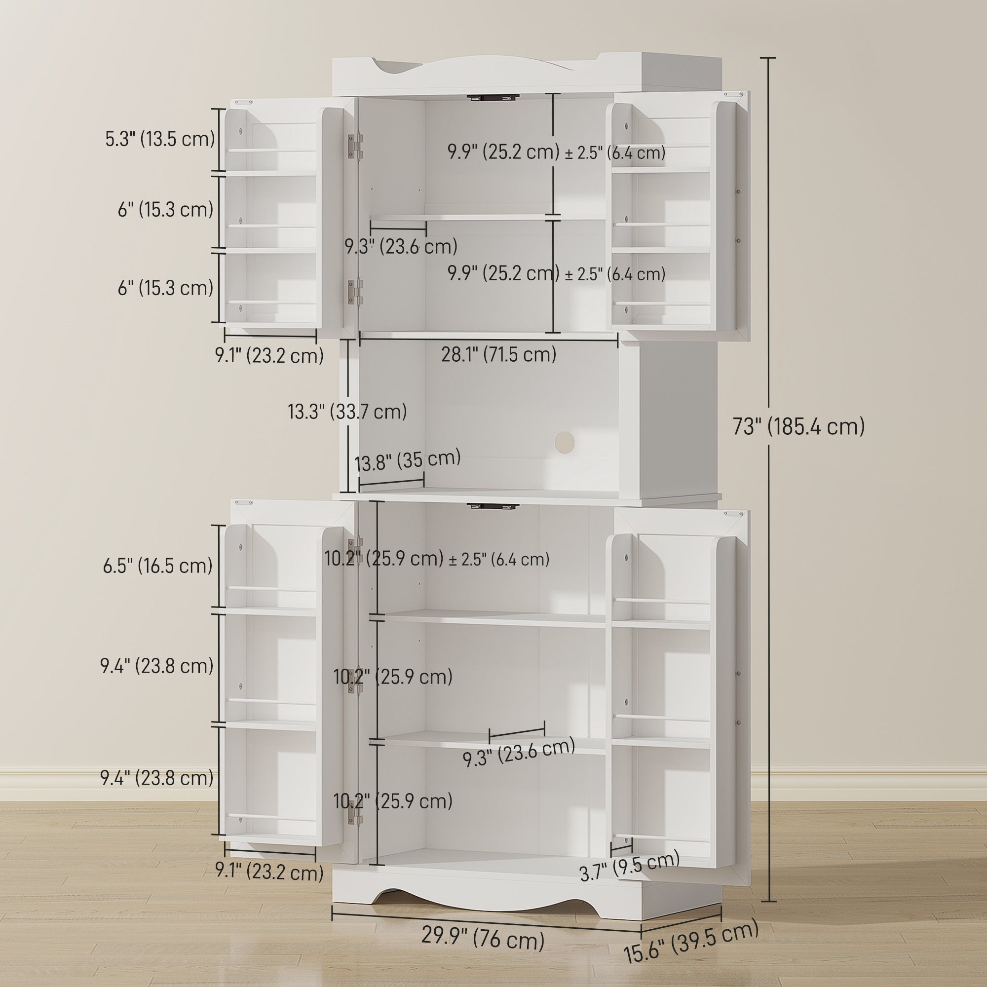 HOMCOM 73" Kitchen Pantry Cabinet, Freestanding Kitchen Hutch with 12 Door Shelves, Adjustable Shelves, Microwave Stand, Black