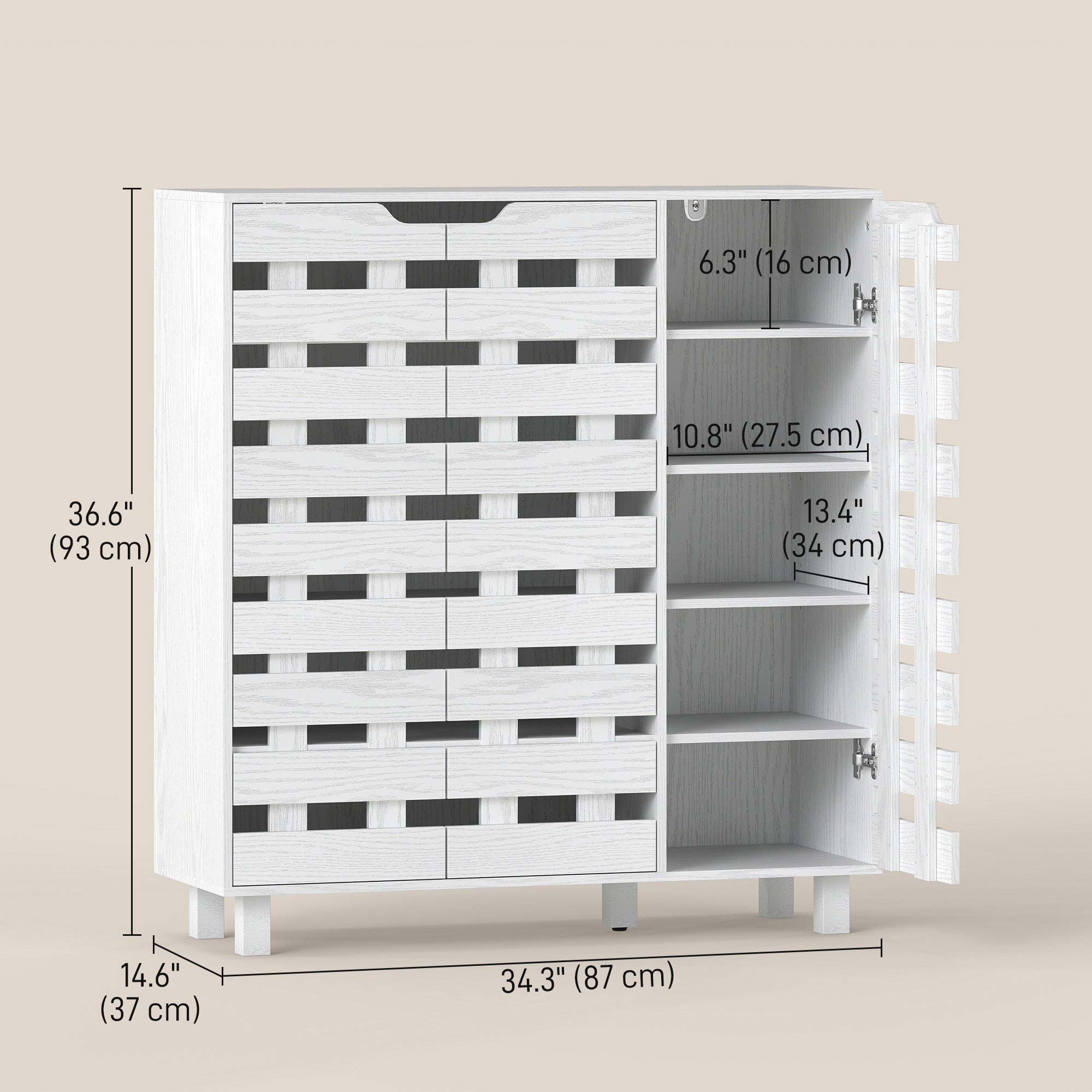 HOMCOM Shoe Cabinet, 21 Pair Shoe Storage Cabinet with Hollowed-Out Doors, White