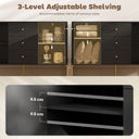 - • A 3-level adjustable shelf in each cabinet provide flexible storage options