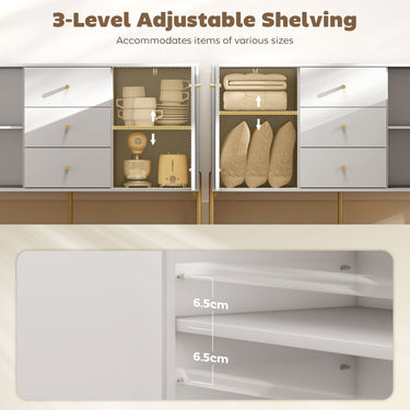 Tired of a cluttered living room and uninspired decor? The daily mess can detract from your home's beauty, while flimsy furniture adds a layer of worry. The HOMCOM modern sideboard offers a serene solution. Its generous storage tidies your essentials, while the chic black and gold design elevates your space. A unique five-leg structure provides enhanced stability, ensuring this buffet cabinet brings both style and steadfast organization to your home.