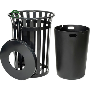Black American Style Metal Outdoor Slatted Steel Trash Bin Trash Cans for Sales