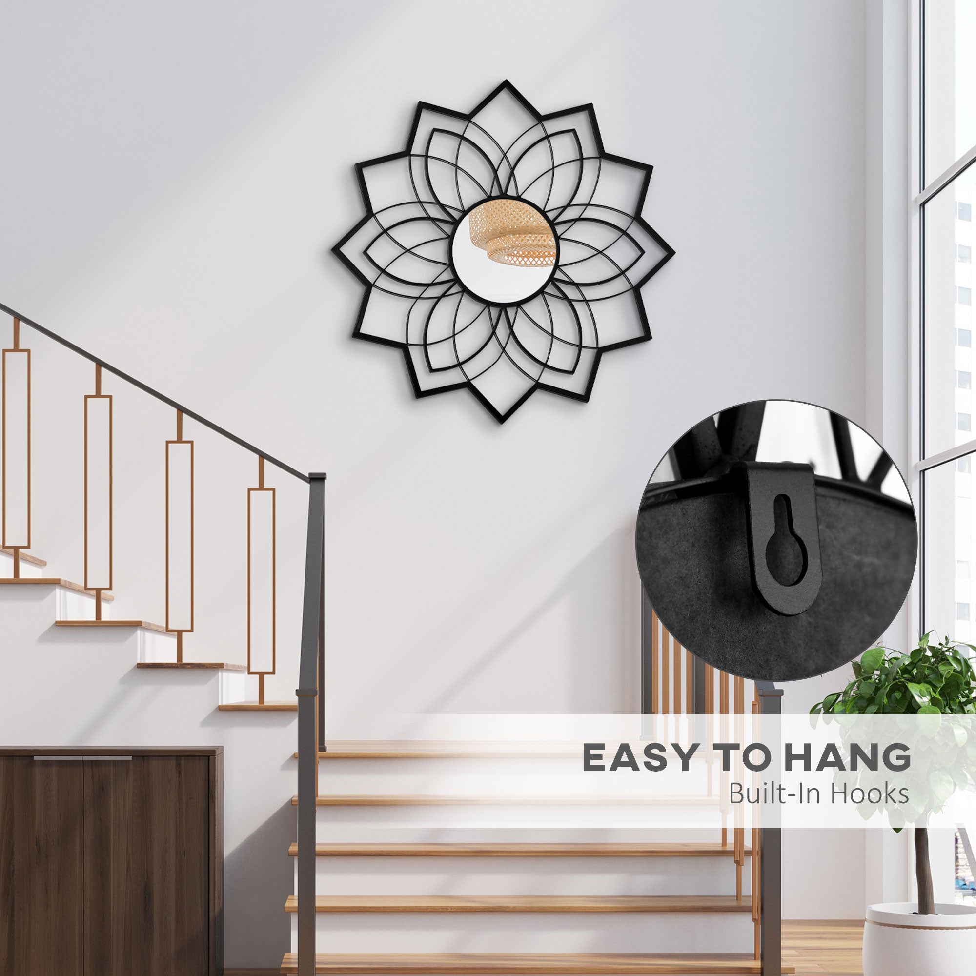 HOMCOM 31" x 31" Modern Flower Wall Mirror, Decorative Mirror for Living Room, Bedroom, Entryway, Home Decor, Black