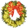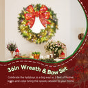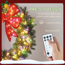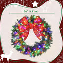 HOMCOM 36in Pre-Lit Christmas Wreath with 3D Red Bow, 11 Lighting Modes, Front Door Christmas Wreath with Remote