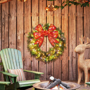 Tired of ordinary holiday decor and braving the cold to adjust your lights? That festive feeling fades when you're shivering outside. This HOMCOM Christmas wreath for the front door transforms your entryway into a neighbourhood showcase with its grand size and lighted 3D bow. From your cozy living room, use the remote to switch this Christmas wreath with lights between 11 modes, creating the optimum holiday welcome without ever stepping into the cold.