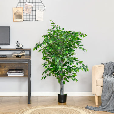 HOMCOM 4.5ft Ficus Artificial Plant with Realistic Leaves, Potted Fake Tree for Home Office Indoor Decor, Green