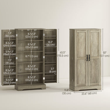 Transform your space with the rustic charm of the HOMCOM Food Pantry Cabinet. This kitchen storage cabinet combines vintage elegance with practicality, featuring a five-tier cabinet and dual six-tier door shelves for optimal organisation. Adjustable shelving in this pantry offers flexible storage solutions, ensuring your living room, kitchen, or entryway stays stylishly tidy.