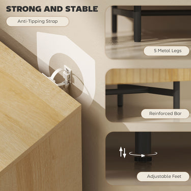 HOMCOM 55" Modern Sideboard, Fluted Buffet Cabinet with Adjustable Shelves, 5 Metal Legs for Kitchen, Living Room, Nature Wood