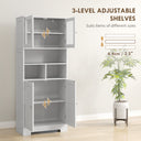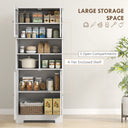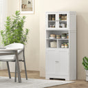 Transform your kitchen with the modern pantry storage cabinet from HOMCOM. Two 2-tier cabinets and three open compartments maximize your kitchen cabinet capacity. Two inner adjustable shelves can each be adjusted to three different heights, allowing you to store items of varying heights, enclosed by glass doors and shaker doors from dust. Explore HOMCOM today and discover the endless possibilities that await. Your dream space is just a kitchen pantry away.