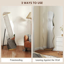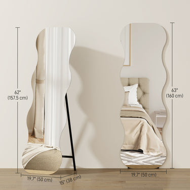 HOMCOM 64" x 21" Full Length Mirror, Irregular Wavy Frameless Full Body Mirror with Pine Wood Base for Bedroom, Black