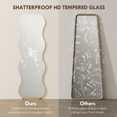Tired of worrying about fragile mirrors in a busy household? The fear of a shatter can overshadow the joy of getting ready. This HOMCOM standing mirror offers peace of mind with its shatterproof tempered glass. The elegant, frameless arch design of this full length mirror provides a complete head-to-toe view, blending safety with sophisticated style, so your family's well-being and your daily routine are both beautifully cared for.