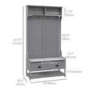 Keep your coats, bags, shoes and small items well organized with our modern hall tree with bench and shoe storage from HOMCOM. This hall tree with 4 hooks for hanging your coat, 3 shelves total for placing shoes, plant and bag 2 drawers for personal item such as keys and socks. Anti-tilt device on the back ensure it keeps securely in place. Finished in a modern style, it will work perfectly with many style decors, and you'll love having it as part of the furniture.
