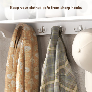 - • 2-in-1 design combines four storage compartments and five double hooks