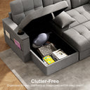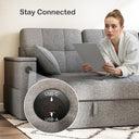 HOMCOM Convertible Sectional Sofa Bed, Pull Out Sleeper Sofa Couch with USB‑A+C, Chaise Storage, L-Shaped Futon Couch, Grey