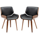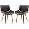 This charming dining chair, with its vintage flair, fuses wood and PU leather upholstery to create a simple yet modern look. Placing it in your home enhances any room with an additional elegant touch. Sit back and relax on the upholstered cushioned seat with curved back added support and comfort to you. This chair set has solid wood legs for a stable seating area that's suitable for daily use.
