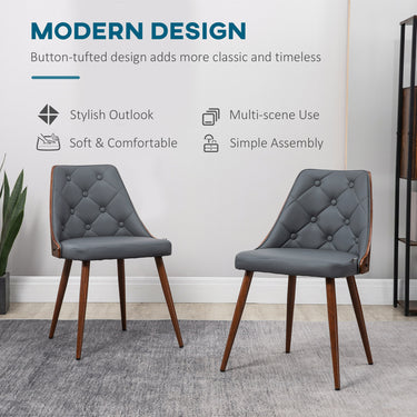 HOMCOM Dining Chairs Set of 2, Tufted Kitchen Chairs, PU Leather Upholstered Seats and Steel Legs for Dining Room, Grey