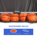This HOMCOM's Electronic Basketball Game offers hours of fun and excitement for family and friends! You can choose your own basketball gaming experience with four different game options in 8 ways with 1 player or 2 players. It features an electronic scoreboard with large LED readouts that shows score and time. When not in use, this unit folds for easy storage. Includes four basketballs, inflation pump and needle.