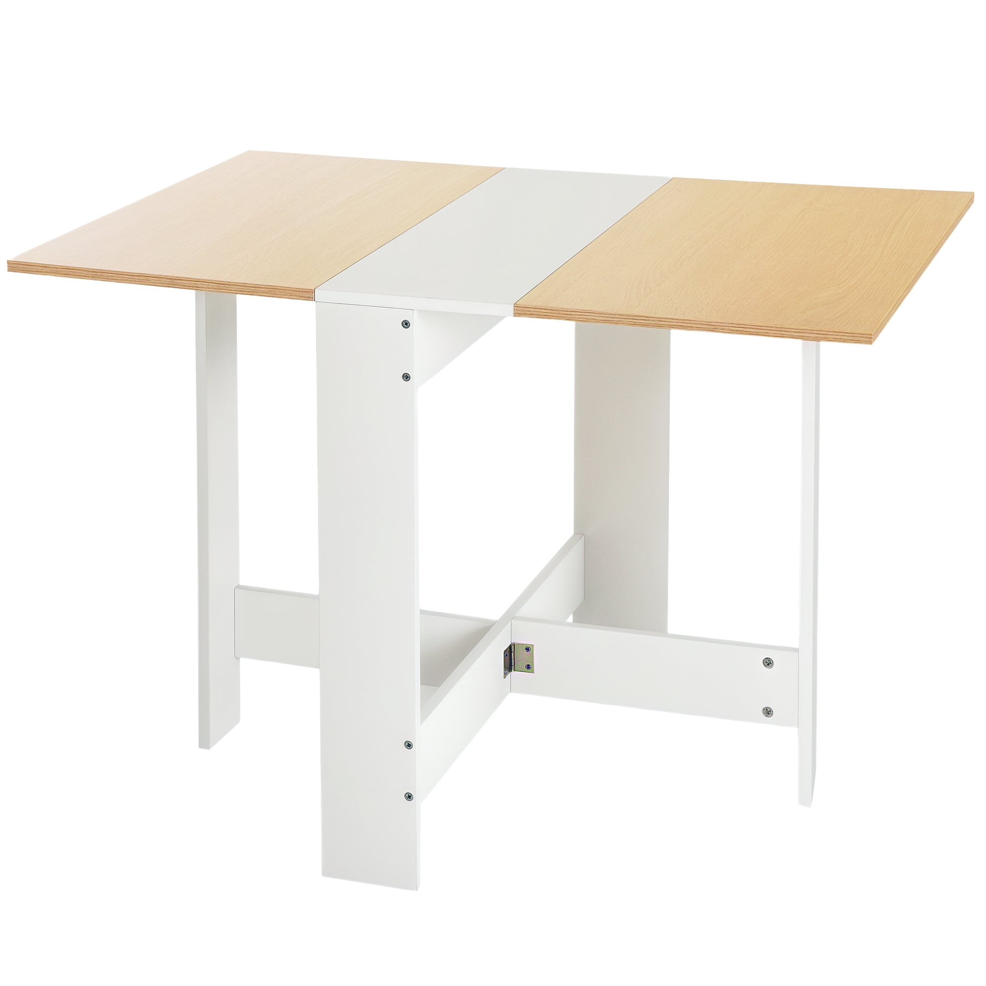 HOMCOM Drop Leaf Dining Table Wood Folding Table Multi-Use Side Table Dining Desk Space Saving Table, White/Oak