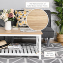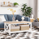 HOMCOM Farmhouse Coffee Table with Slatted Bottom Shelf, Center Table with X Bar Frame for Living Room, White, Natural