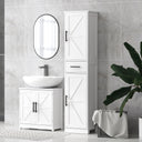 HOMCOM Farmhouse Pedestal Sink Storage Cabinet, Bathroom Under Sink Cabinet with 2 Barn Doors and Adjustable Shelf, White