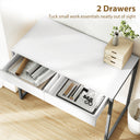 - • Two handle-less drawers offer hidden storage, keeping your workspace tidy and focused