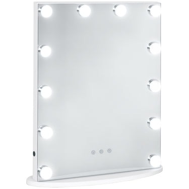 HOMCOM, Hollywood Lighted Makeup Mirror with 12 Dimmable LED Bulbs, 3 Color Lighting Modes, Touch Control Design for Cosmetic Dressing Table, White