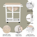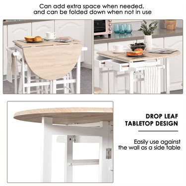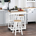 HOMCOM Kitchen Trolley 3 Piece Kitchen Cart Set Drop Leaf Breakfast Table and 2 Stools w/ Rolling Wheels & Towel Bars, Wood & White