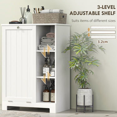 Discover the convenience of the HOMCOM laundry cabinet, a sleek addition to any home. Featuring a tilt-out laundry hamper, easily transport your washing with the handy side groove handles. Maximise your space with three extra storage compartments and a top surface. Finished in white with a chic silver knob, this tilt out laundry hamper combines functionality with style.
