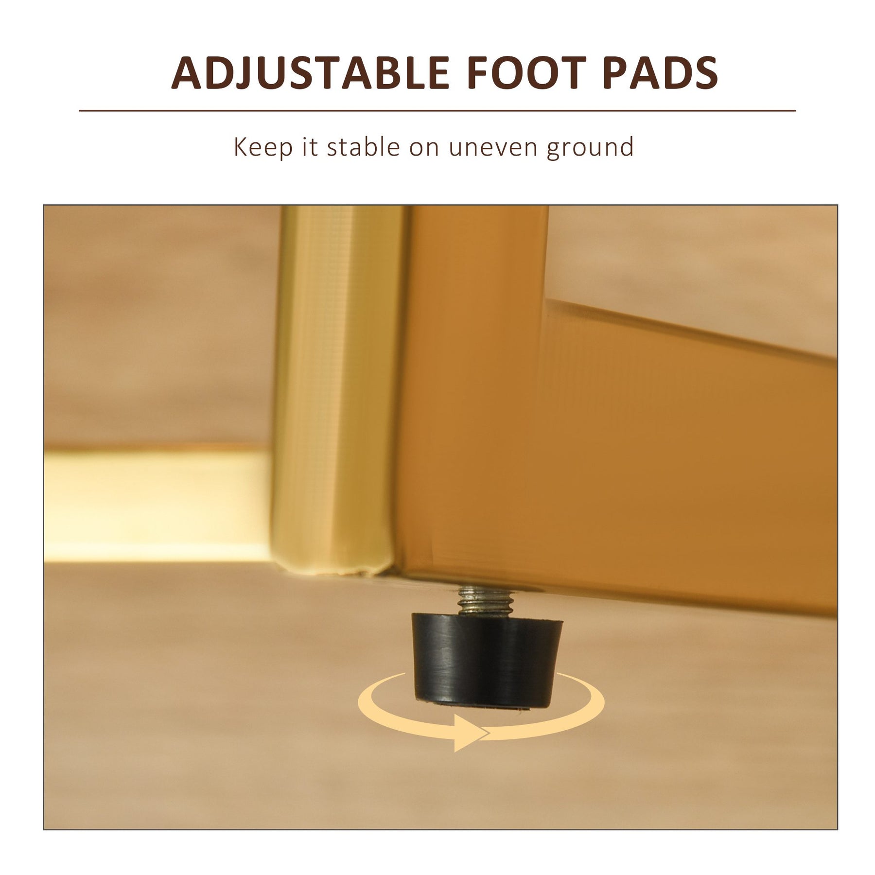 - • Adjustable foot pads keep the table and stool stable on uneven ground