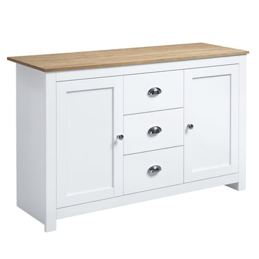HOMCOM Modern Sideboard Cabinet, Kitchen Buffet Cabinet with 3 Drawers and Adjustable Shelves, Buffets Tables, White