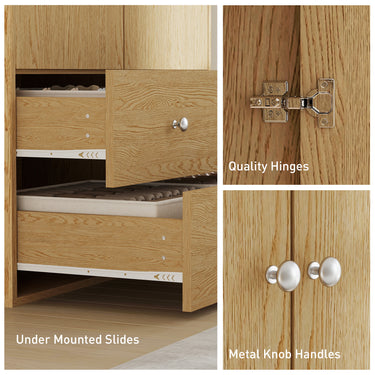 HOMCOM Modern Wardrobe Closet Armoire with 2 Drawers and Hanging Rod, Clothes Storage Organizer for Bedroom, Natural Wood