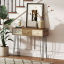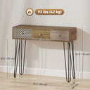 - • Unique drawer patterns with hairpin legs blend modern and vintage styles