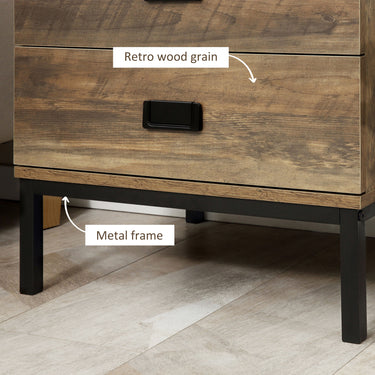 HOMCOM Nightstand with Storage, Retro Bedside Table, Side Table with 2 Drawers, Steel Frame for Bedroom, Coffee