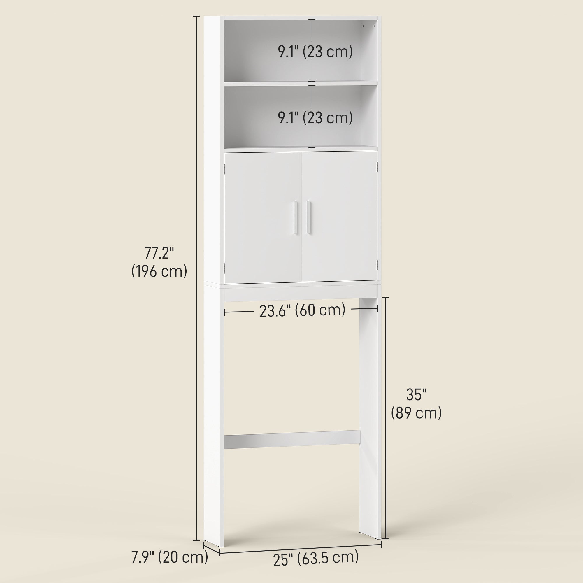 HOMCOM Over The Toilet Storage Cabinet, Freestanding 4-Tier Bathroom Organizer with Adjustable Shelf and 2 Doors, White