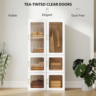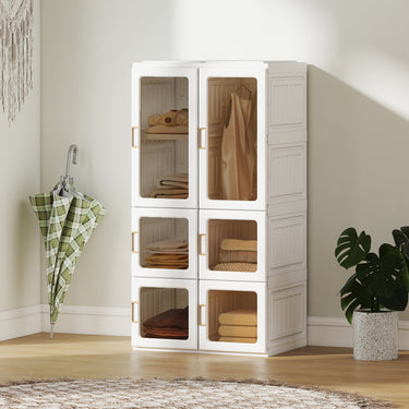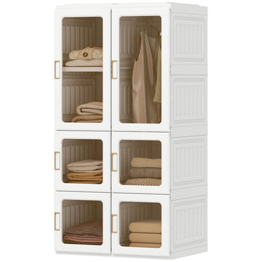 HOMCOM Portable Wardrobe, Foldable Plastic Closet with 5 Compartments, Hanging Rod and Magnetic Doors, White