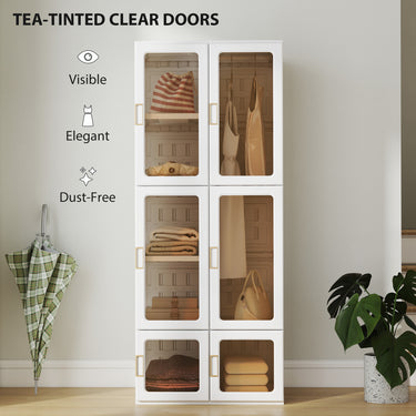 HOMCOM Portable Wardrobe, Foldable Plastic Closet with 6 Compartments, Hanging Rod and Magnetic Doors, White