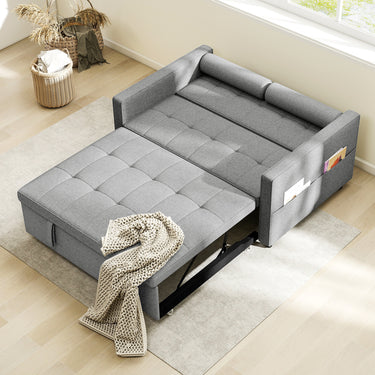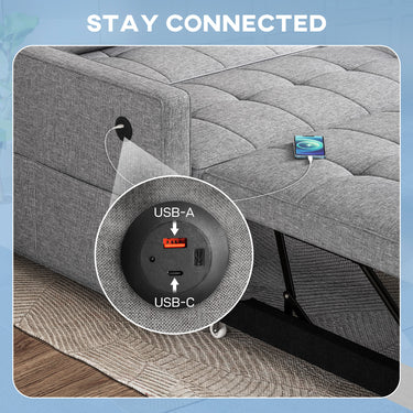 HOMCOM Pull Out Sofa Bed, Sleeper Sofa Couch with USB‑A+C, Small Linen Loveseat Futon Couch for Living Room, Grey