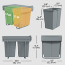 - • Dual 5.3 gal (20L) bins offer 10.6 gal (40L) capacity for easy waste sorting