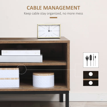 Upgrade your living room and entertainment area with this retro HOMCOM TV stand with storage. The combination of its beautiful color and cable management, makes it stylish and practical. Also, this entertainment unit has 3 compartmentalized storage space with a sliding door. Depends on your preference and needs, small compartments can keep game controller, cable box or books. The large compartment can store CDs and video games. Without a doubt, it will be a perfect companion for your relaxing moments.