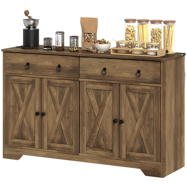 HOMCOM Sideboard Cabinet with 2 Drawers, 4 Barn Doors and 2 Adjustable Shelves, Buffet Table for Living Room, Light Brown