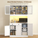 Transform your kitchen with the HOMCOM Kitchen Storage Cabinet, a vibrant blend of style and functionality. Illuminate your space with an RGBW LED light strip featuring 16 colours and dynamic modes like flash and fade, all controllable via remote. This kitchen cabinet offers ample storage with three 2-tier cabinets, a 3-tier cabinet, and three open shelves, ensuring a tidy and stylish kitchen surrounding.