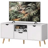 Revamp your living room with this chic and functional HOMCOM TV stand. Its stylish colour blend enhances any decor. Featuring a spacious top surface, an open shelf, a drawer and two cabinets, it offers large storage space for CDs, DVDs, electronics, and other living room essentials. This TV cabinet is the optimal accessory for a movie night.