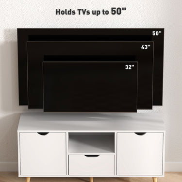HOMCOM TV Stand with Storage for up to 50" TV, Modern TV Table with Open Shelf, Drawer and 2 Cabinets, White